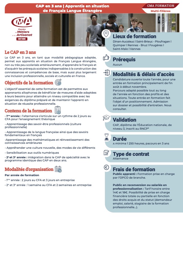 CAP en 3 ans – parcours Français Langue Étrangère (FLE)